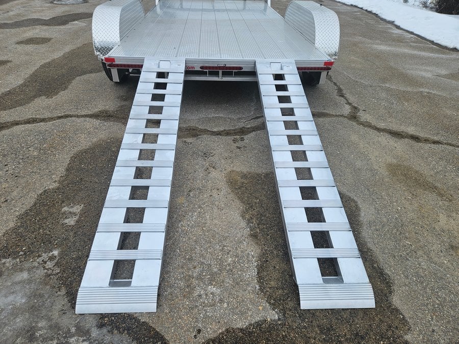 Practical features like LED lights, 15″ radial tires, galvanized rims, and galvanized axles mean your trailer will be ready for the long haul. All aluminum extruded decking is perfect to stand up to long term exposure! Stowaway ramps make loading/unloading a breeze! Upgrade your towing experience today with our tandem axle aluminum utility trailer and discover the difference it can make on the road!