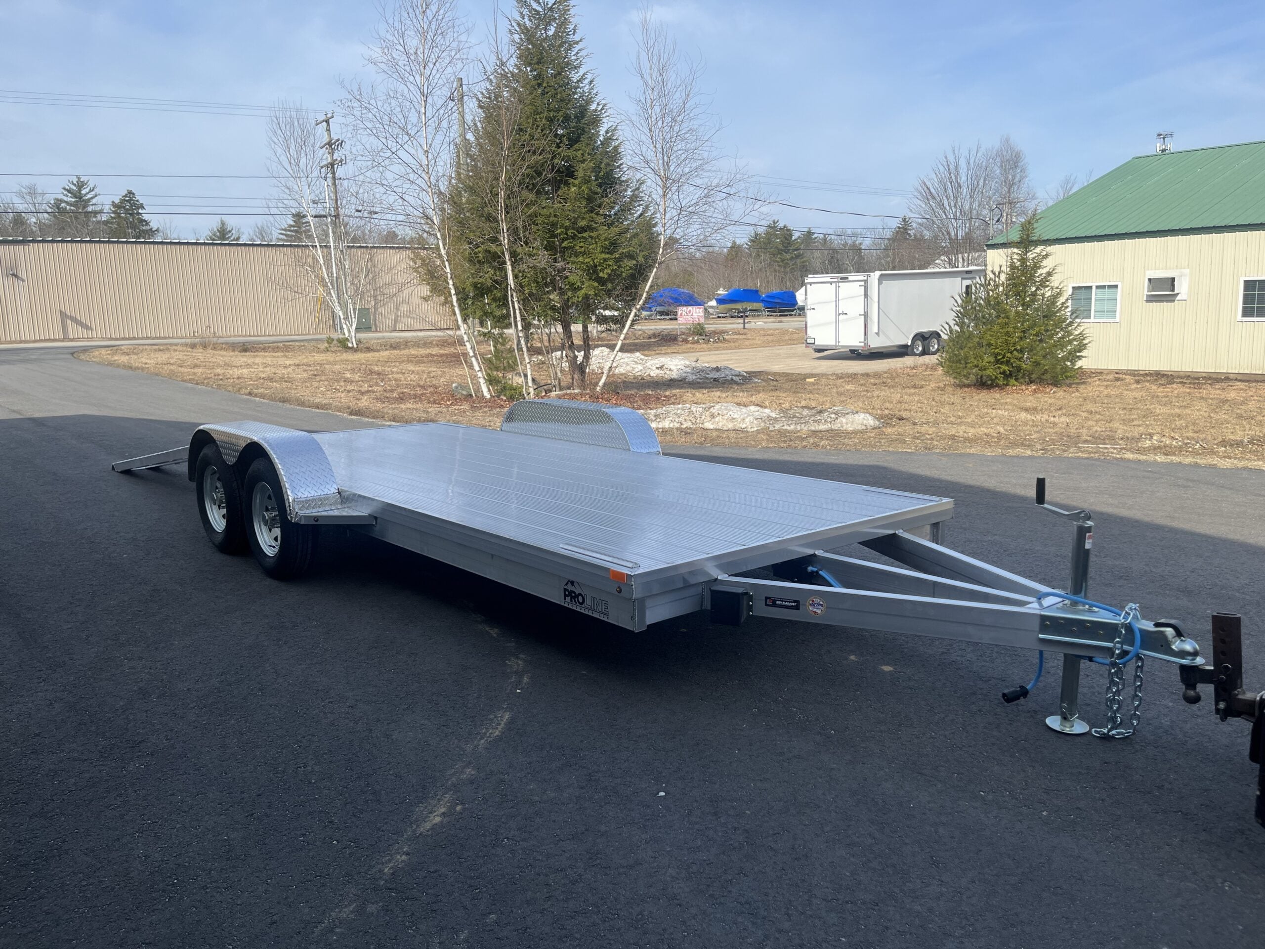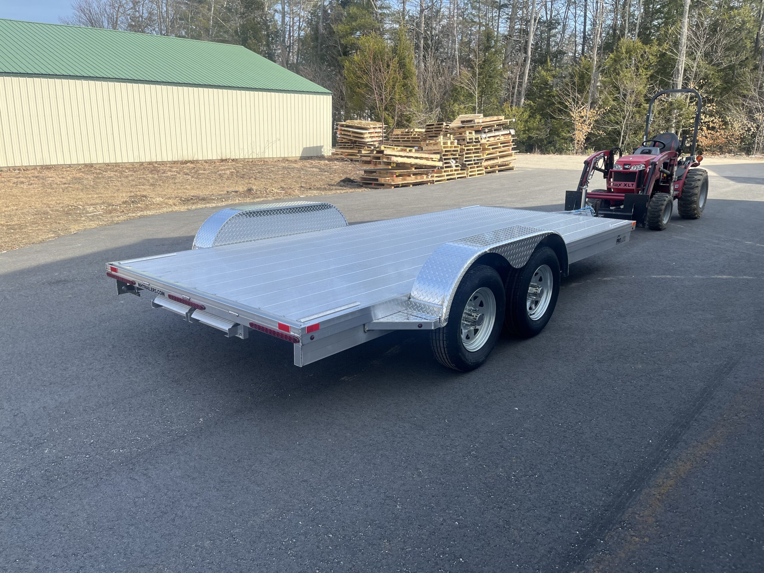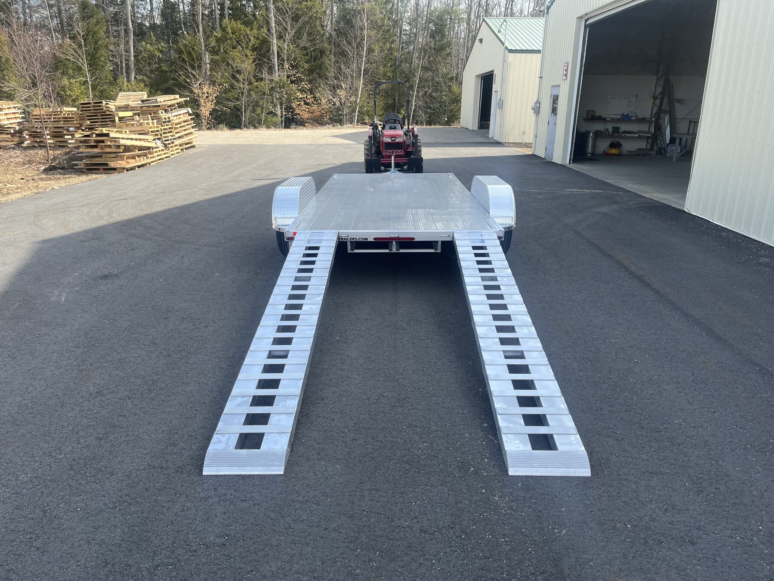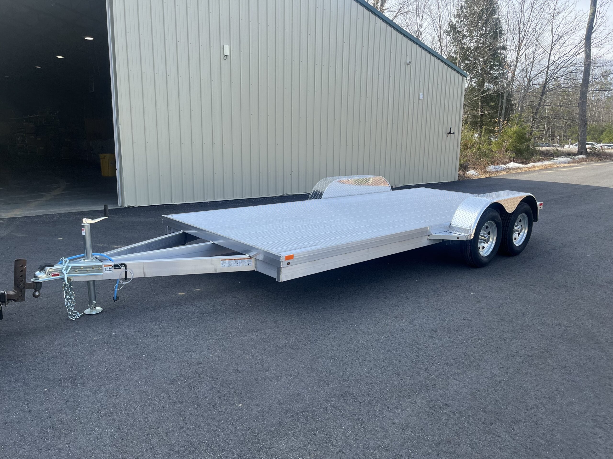 All aluminum tandem axle utility trailer with aluminum decking
